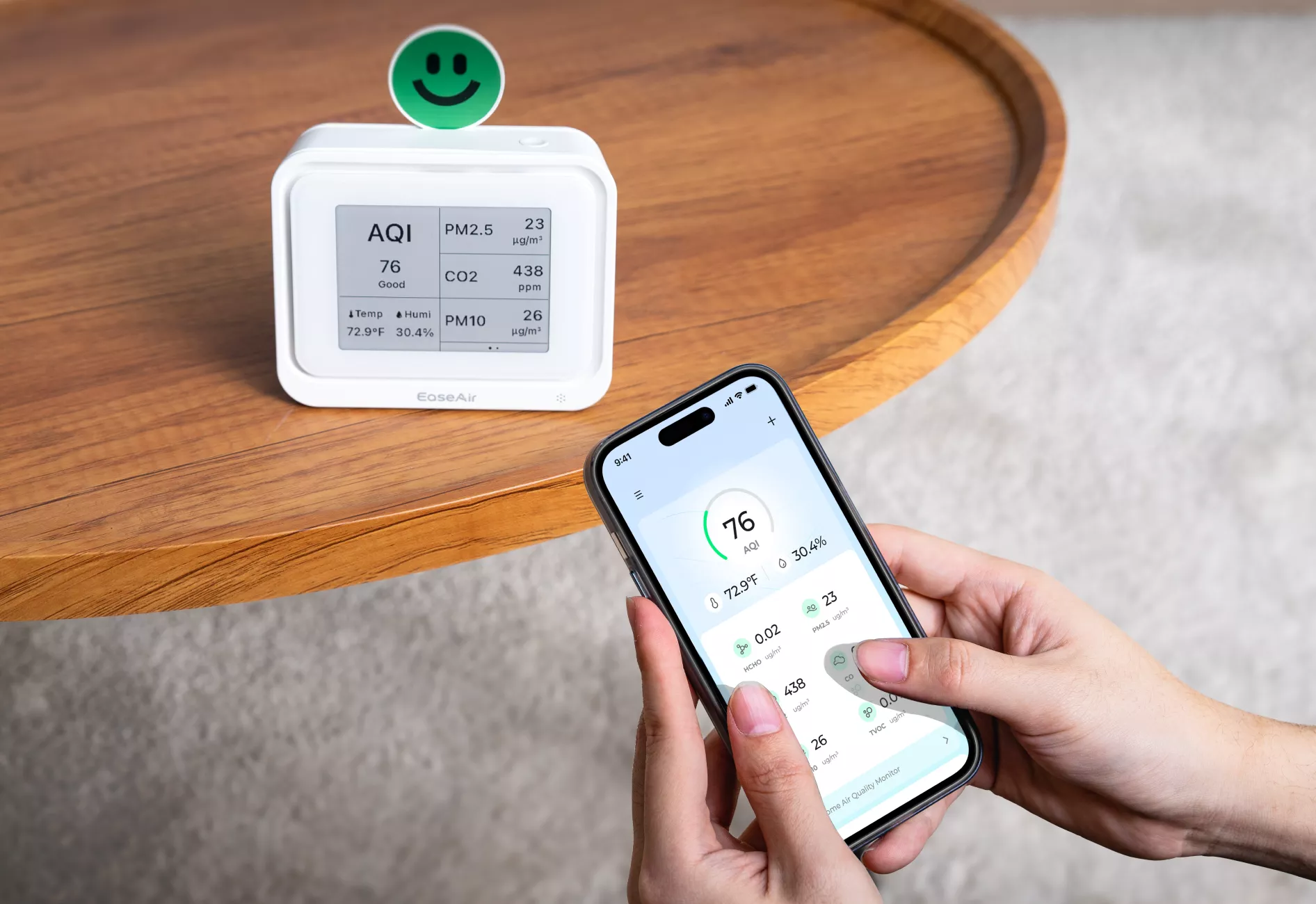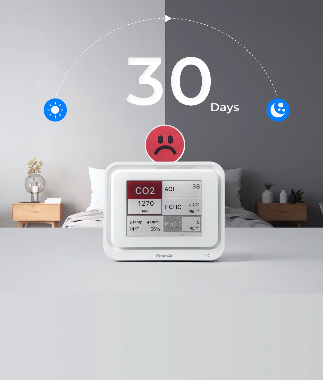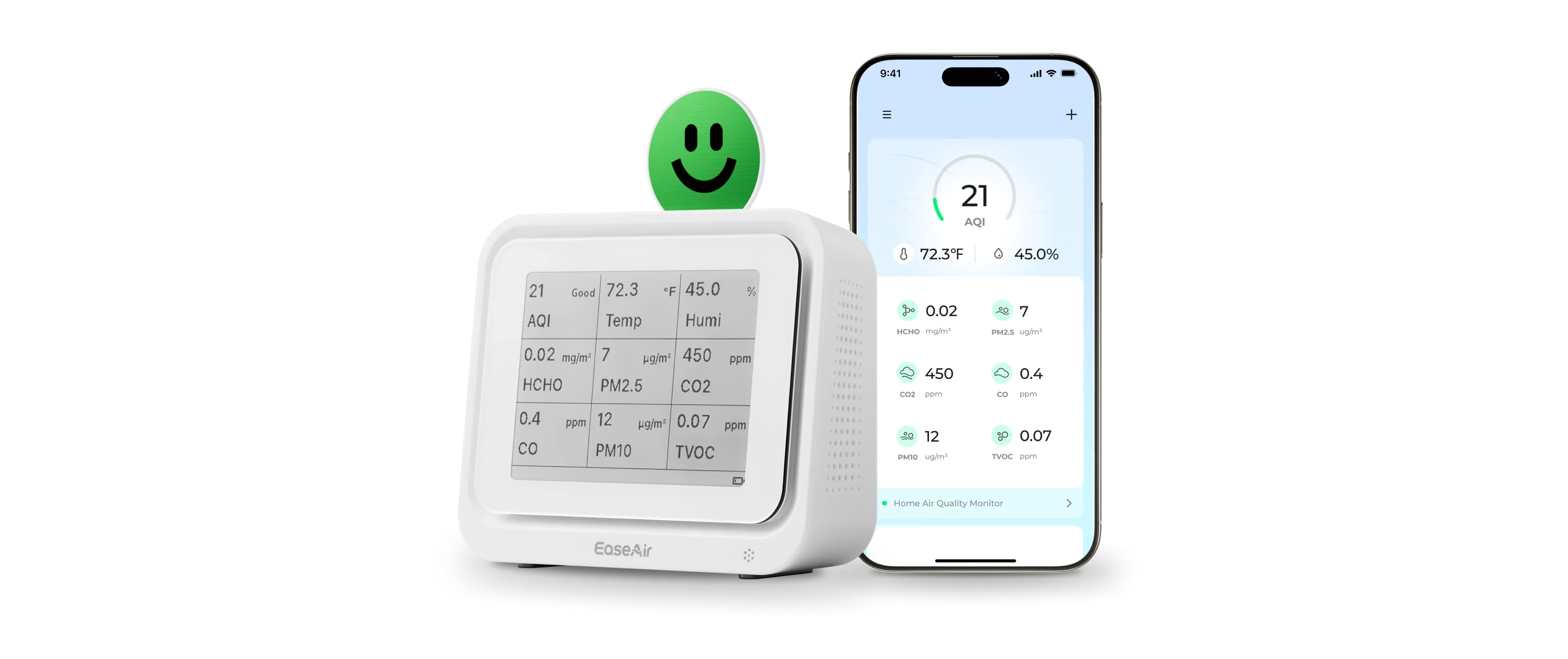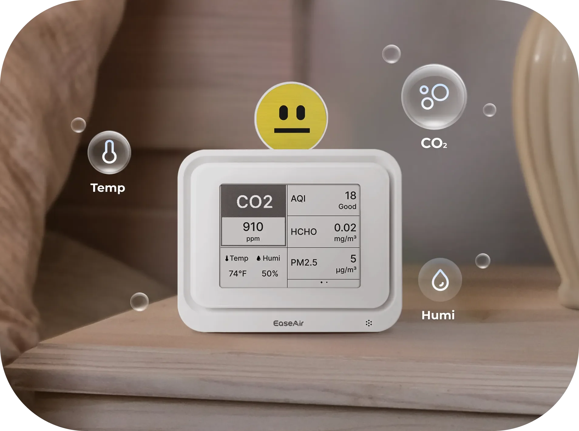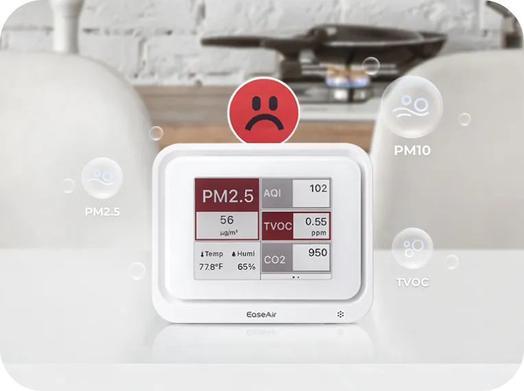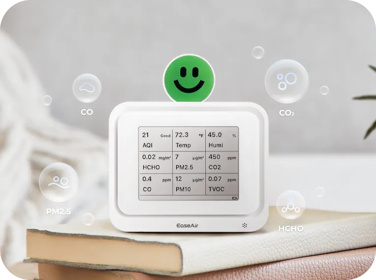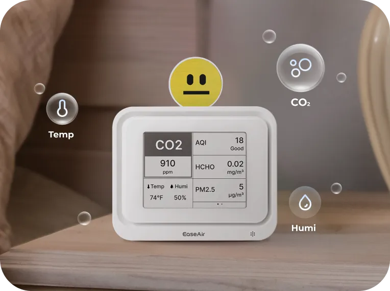 The AQI (Air Quality Index) does not include measurements for CO₂, formaldehyde, or TVOCs. It primarily reflects pollutants like PM2.5, PM10, ozone, and nitrogen dioxide. A "Good" AQI means those specific pollutants are at safe levels, but it doesn’t represent the complete air quality. High CO₂ levels can trigger a red alert on the EaseAir display, even if the AQI appears good. This is why EaseAir gives you a more complete picture of your air quality beyond just AQI.